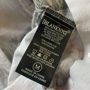 Flirty and feminine “Garden Party” floral romper from Blank NYC. Gorgeous allover tropical palm print. Button front placket + a removable belt. Don’t love a big bow? Tie it off to the side and leave the ends loose as shown in my personal model photos for a more relaxed vibe. Material: 55% linen, 45% viscose. Size medium. Please see photo section for approximate flat measurements + my model stats for fit reference.