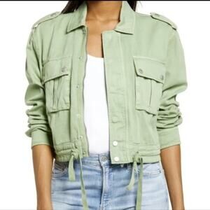Blank NYC Green Twill Utility Zip up Jacket. preowned with some light wear and some small holes in one of the pockets shown in photos. otherwise in good preowned condition!