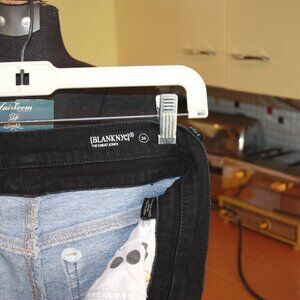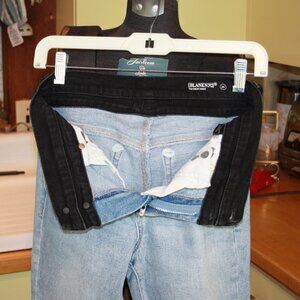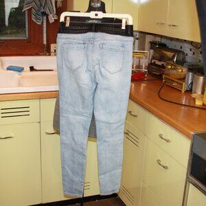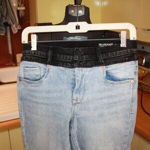 This is a pair of Blank NYC jeans. They are the basic jean style with a big black band at the waist. They are tagged high rise skinny and do have some stretch to them. They are marked as size 26 and are about 14 inches flat at the waist and the inseam is 28 inches. They are in very nice shape.