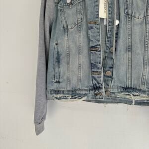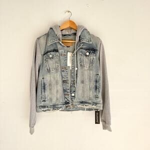 Blank NYC Hooded Fury Button Front Light Denim Jacket Blue/Gray M