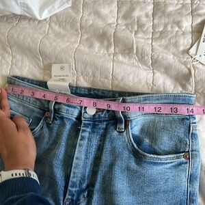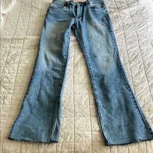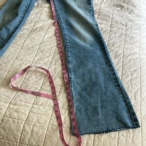 Hoyt high rise mini flare jeans with side slit at hem.