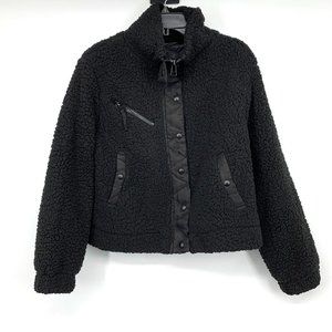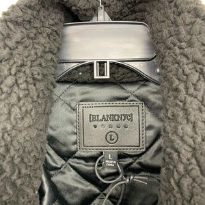 Blank NYC Jacket Womens Size Large Black Soma Life High Collar Faux Sherpa Shearling SOFT Button Snap. New with tags. Chest: 23.5"