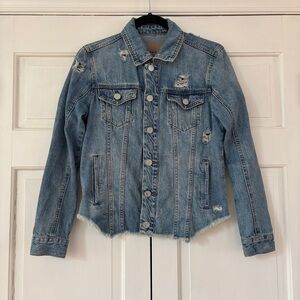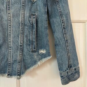Blank NYC Jean Jacket Raw Hem Distressed Destroyed Size XS Trucker Denim Coat