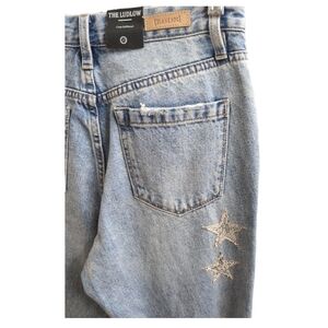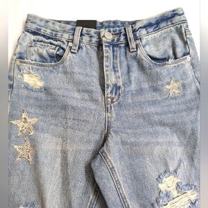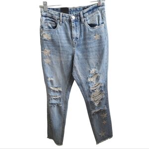 Blank NYC Jeans The Ludlow Crop Girlfriend Distressed Embroidered Stars