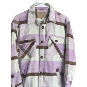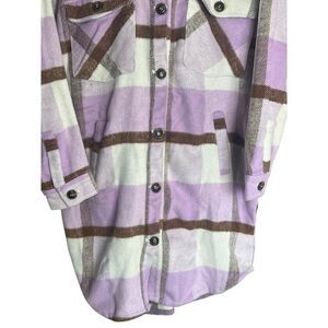 Blank NYC Lavender Beige White Plaid Oversized Long Shirt Jacket Shacket Small