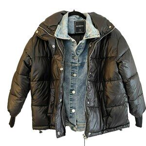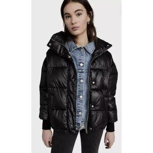 Blank NYC Layered Oversized Run the Show Denim Puffer Coat Jacket Sz XS NWT