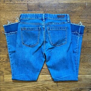 Blank NYC skinny low rise jeans with frayed hems and two tone denim. They are a little stretchy and are in great condition.