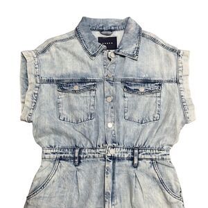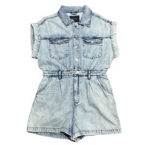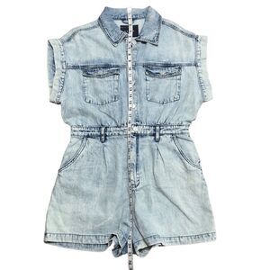 Blank NYC Light Wash Denim Short Sleeve Romper LARGE NWT