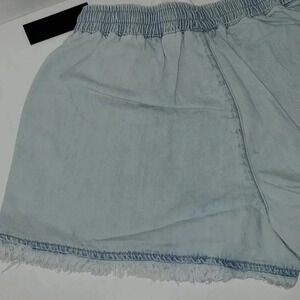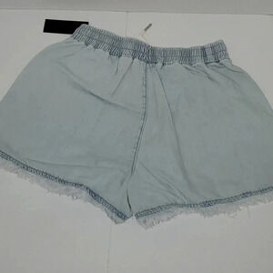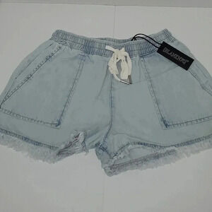 Blank NYC Lightwash Denim Elastic Waist Drawstring Shorts in Doing Too Much XS