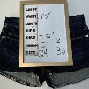 Blank NYC Little Queenie Denim Blue Raw Cutoff Hem Stretch Women Size 24 Pockets