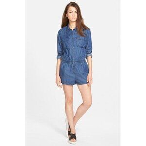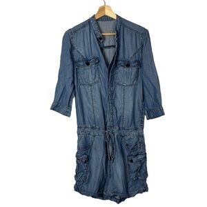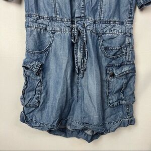 Blank NYC Medium Wash Denim Chambray Utility Romper S
