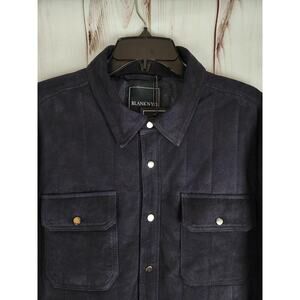 Blank NYC Men's Goat Skin Leather Suede Shirt Jacket Blue Large NWT *Defect*
