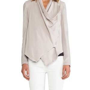 Blank NYC Mixed Media Drape Moto Jacket Taupe XS