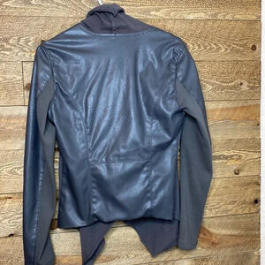 Brand: Blank NYC Size: Small Color: Gray Details: Faux Leather, Cowl Neck, Long Sleeve, Cotton, Stretch, Asymmetrical zip Armpit to armpit: 20” across