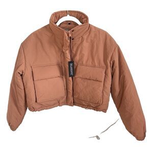 Blank NYC Nylon Copped Puffer Jacket with two front pockets in Blush Col M NWT