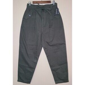 Blank NYC Olive Green Pleated Pants w/ Tie Waist Women's Size 30 NWT 100% Cotton
