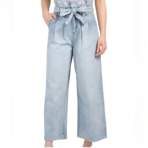 Blank NYC Paperbag High Rise Wide Leg Cropped Light Wash Size 30 Jeans No Belt