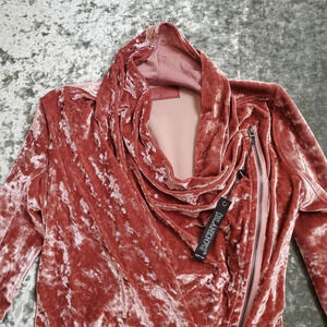 Blank NYC Pink Velvet Asymmetric Zip Blazer