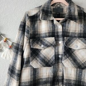 Blank NYC Plaid Wool Blend Shacket In Checked Out Oversize Grunge Retro Boho S