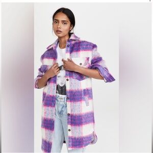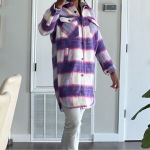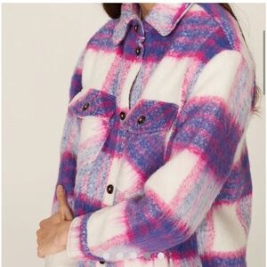 NWT Blank NYC Revolve Purple Pink Plaid Oversized Prime Time Shirt Jacket Shacket