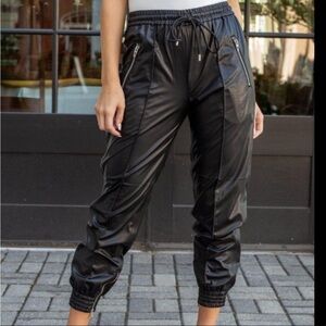 Blank NYC Running Wild Vegan Faux Leather Joggers Size 26 Slouchy Track Pants Grunge Loungewear Rocker Edgy Whimsigoth Weekend Casual Travel