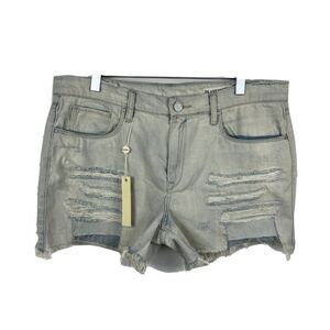Blank NYC Shorts 31 Womens New Light Blue Tomboy Short Distressed Mid Rise
