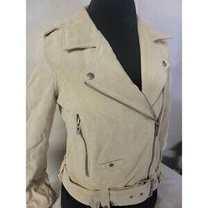 Moto-inspired jacket is featured on a leather fabrication Medium / 8 35" Bust 29" Natural Waist see photo