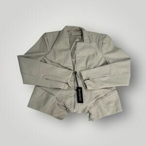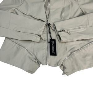 Blank NYC Size XL Faux Leather Vegan Zip Front Moto Jacket Cream Lined Edgy NWT