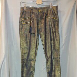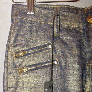 Blank NYC Skinnie Classique New Black Gold Metallic Moto Zipper Detail 25 Skinny