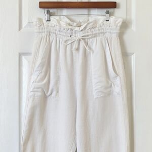 Blank NYC Soft Woven High Waisted Paperbag Relaxed Fit Jogger Pants White Medium