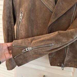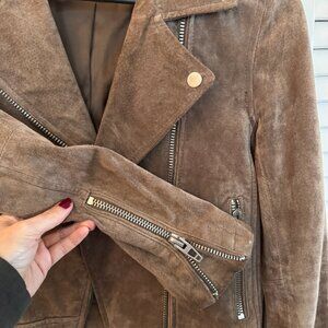 Impeccable suede jacket from Blank NYC! Color is a perfect neutral taupe that would look great with blue, black or white denim! Worn only once. I'd definitely keep it if it still fit me. Non-smoking home.
