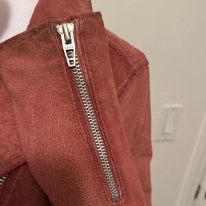Elevate your style with this chic suede moto jacket. Featuring a rich rust color, it's perfect for adding a touch of sophistication to any outfit.