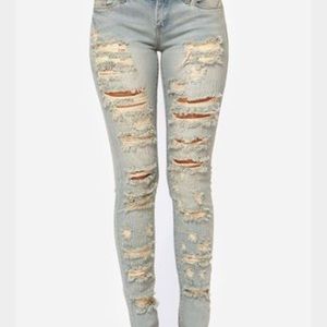 Blank NYC Super Distressed Light Wash Skinny Jeans