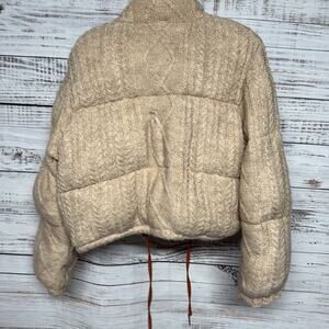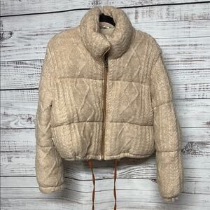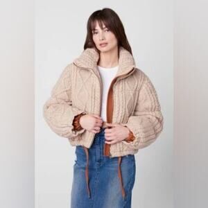 Blank NYC Sweater Puffer Short List Jacket Cable Knit Jacket in Cream Large