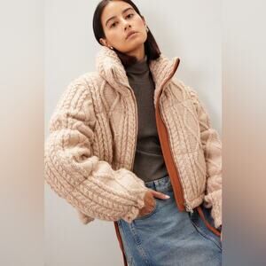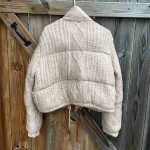 Blank NYC Sweater Puffer Short List Jacket Large Cream Damage