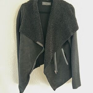 Blank NYC Sweater-Jacket Hybrid – Black Shearling Moto Style (Size M)