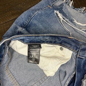 These jean shorts from The Bar feature a stylish distressed design with intentional fraying and rips, offering a trendy, worn-in look. Crafted in a classic blue shade, they are perfect for casual outings and add a touch of vintage flair to any outfit.