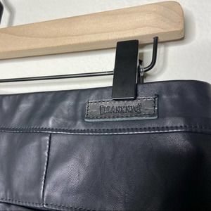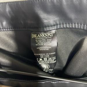 Blank NYC The Bond pants, size 32. Black vegan faux leather pants. High waist, skinny leg, with side zipper closure. Pants have front and back pockets, and decorative zippers on backs of the ankles. New with tags.