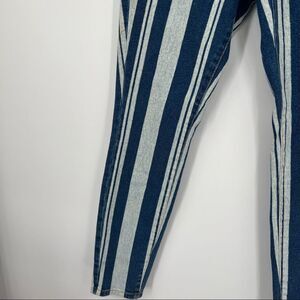 Graphic vertical stripes make your legs look a mile long when you wear these trendy skinny jeans.