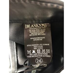 Blank NYC The Bond Pants Vegan Leather Skinny Mid Rise Carbon Black NWT Size 26