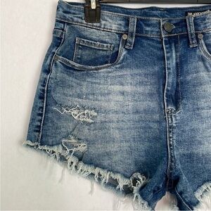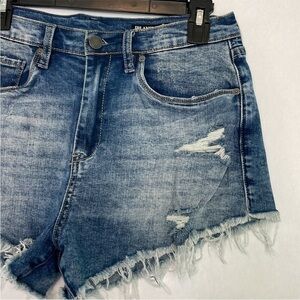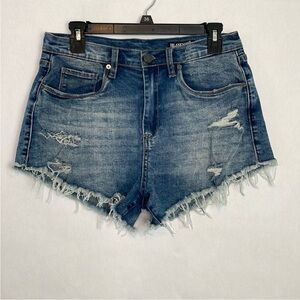 Blank NYC The Lenox high rise distressed denim/jean shorts. Size 28. In good preowned condition. No stains. Frayed Hems. Waist measures 30 inches. Rise 11.5. 2 inch inseam. Comes from a smoke free home.