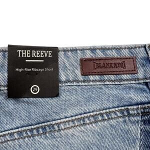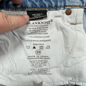 The Blank NYC Cut-Off shorts in size 29 are designed for women and feature a high-rise ribcage fit. Made from cotton, these blue shorts have a patchwork design with a raw hem and a medium fabric wash. Suitable for casual occasions, they are perfect for summer wear. The shorts have a zip closure and are machine washable. Manufactured in China, the model is called The Reeve. New with tags (NWT).