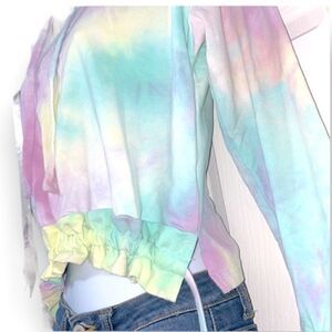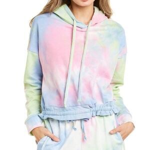 Blank NYC Tie Dye Hoodie Tease Me Cropped Hooded Drawstring at Hem Size XSmall