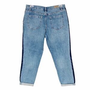 Blank NYC crop girlfriend jeans with a two tone accent on the sides