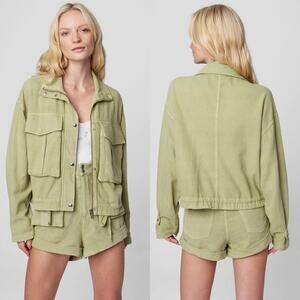 Blank NYC Utility jacket linen blend sage green Sz Medium baggy Y2K coastal