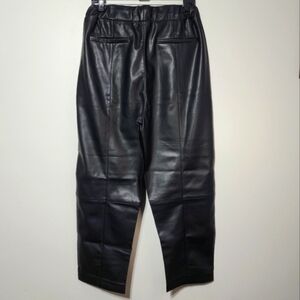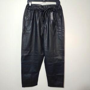 Faux leather adds an edgy touch to these pull-on cocoon pants complete with a drawstring waist for a comfortable fit.