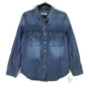 Blank NYC Western Denim Shirt Womens Medium Dramatic Fringe Lightly Distressed