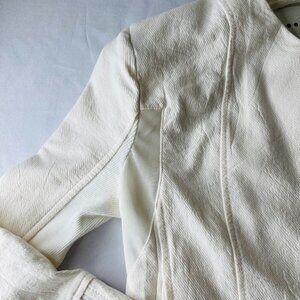 Blank NYC White Crepe Moto Jacket Size XS Mesh Panels Long Sleeve Zip Close