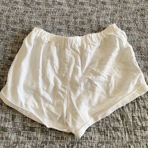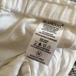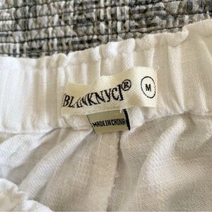 VGUC white linen blend shorts from BlankNYC. Cuffed hem with front pockets. Elasticated waist with front working button and faux placket. Size Medium. Please see pictures for measurements and approximate measurements.