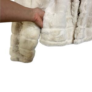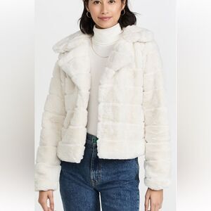 Super soft white quilted faux fur jacket. Fully lined, open front, side pockets.